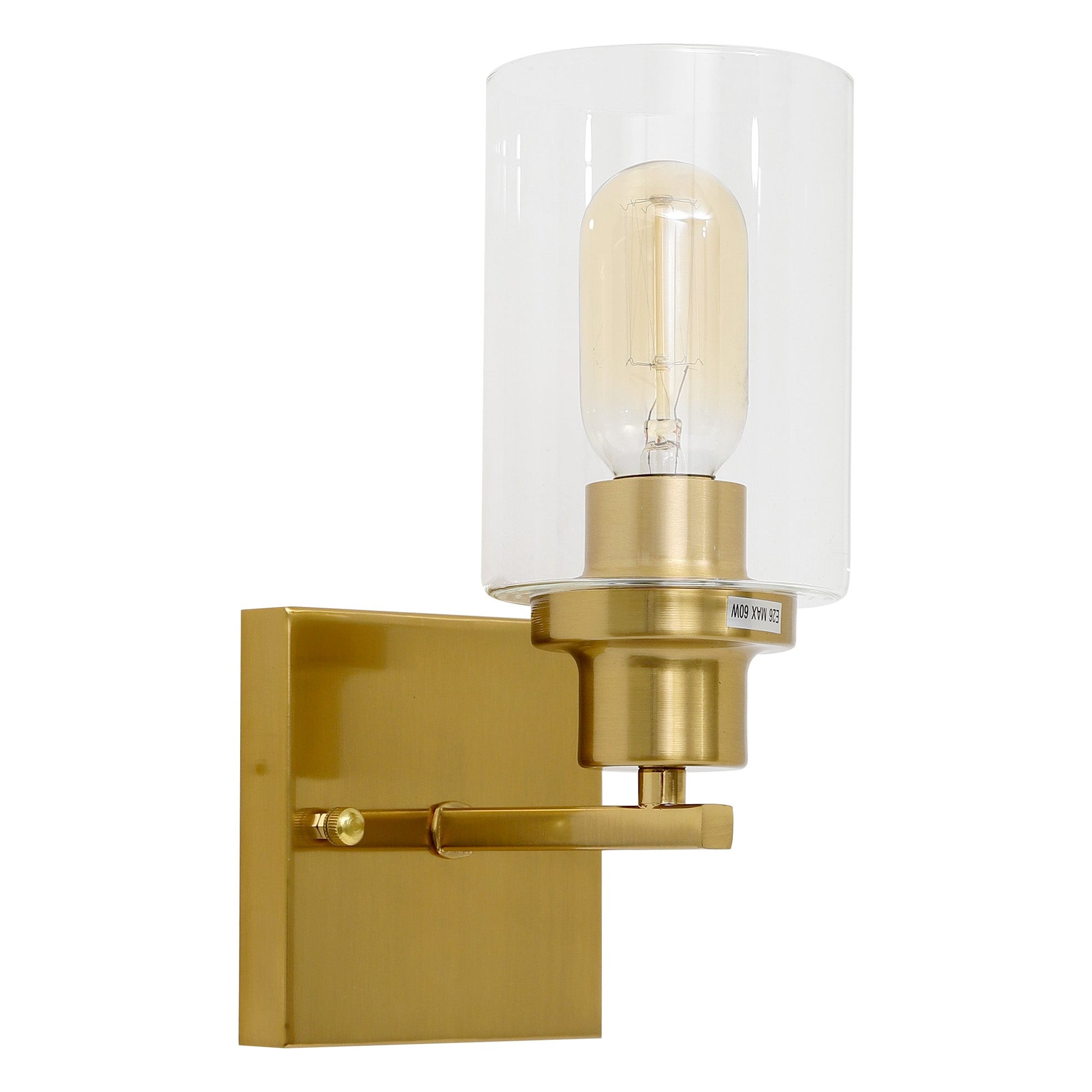 1-Light Gold Wall Sconces, Modern Bathroom Vanity Light Fixtures,Metal Wall Lamp with Clear Glass Shade, Wall Mount Lights for Bathroom Mirror,1/2 PCS