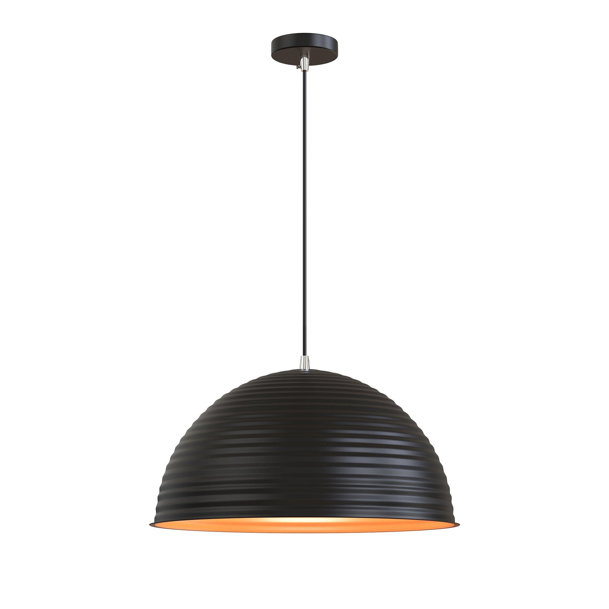 This chandelier is in the shape of a threaded semicircular pot lid with a modern and simple style. The exterior is black, the interior is golden, and the whole is noble and generous. It is suitable for installation anywhere.