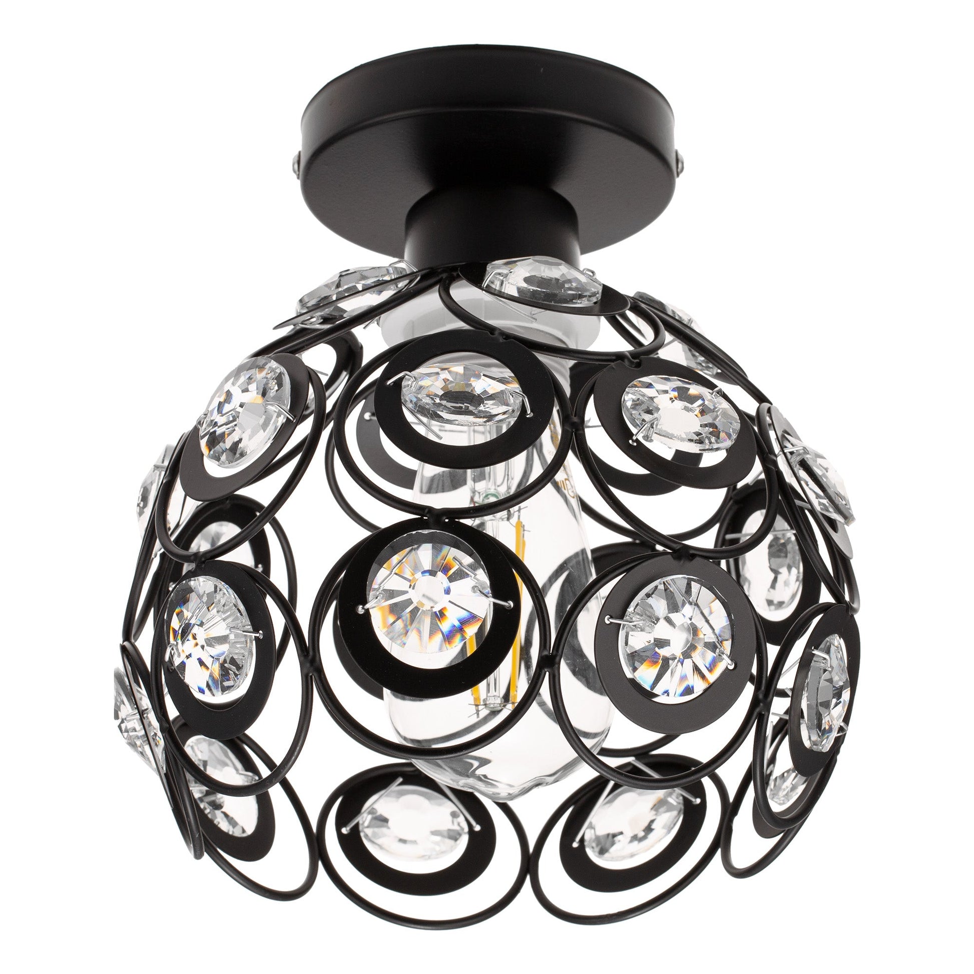 - The black semi flush mount ceiling light with a sleek design is ideal for modern style home decoration. The sparkly crystal embedded in the chandelier light fixture creates a romantic sense for the hallway by displaying wonderful pattern on the ceiling. There is no better option to add a focal point for your home than this ceiling lamp.