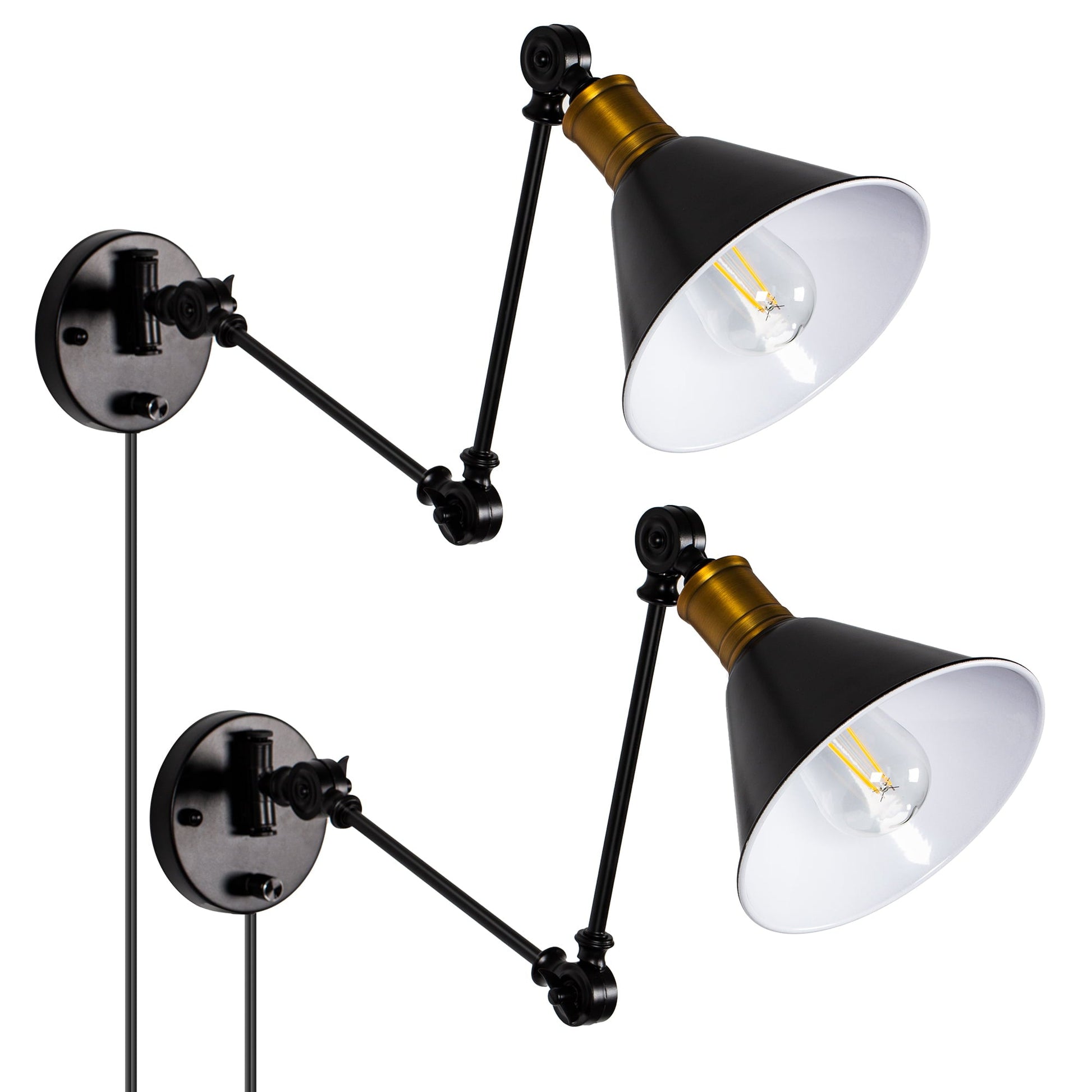 2 PCS Swing Arm Wall Lamp, Adjustable Wall Light Fixture Brass & Black Wall Sconces for Bedroom Living Room Kitchen Dining Room