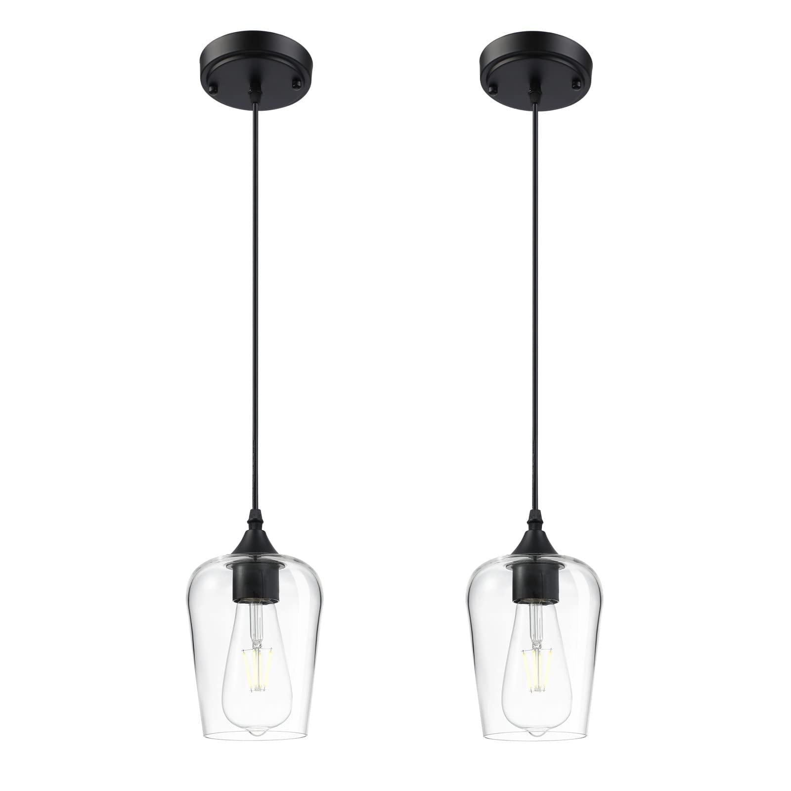 2PCS Hanging Light,Single Glass Chandelier Fixture Kitchen Island Lamp