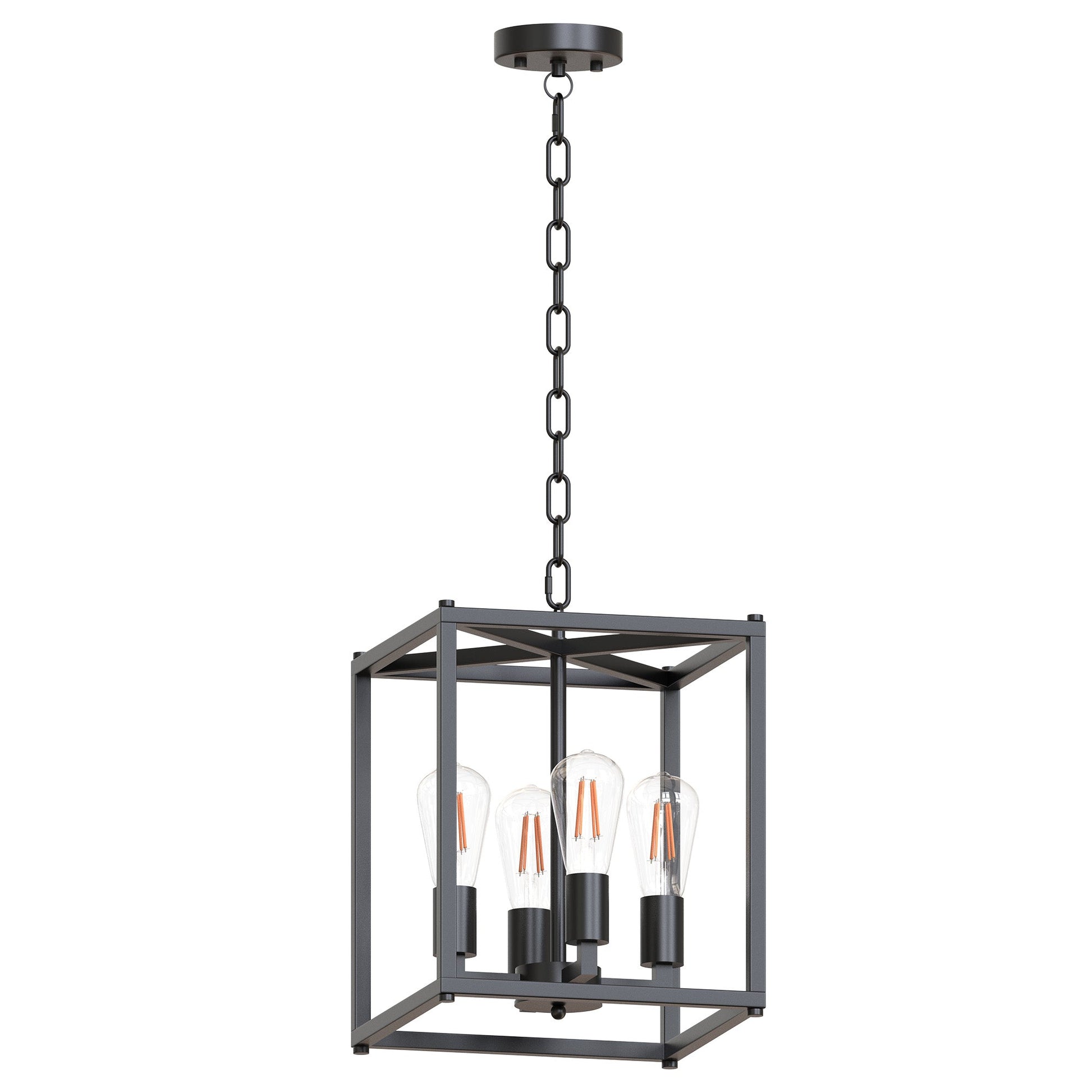 4-Light Black Farmhouse Chandelier Iron Lantern Pendant Light Rustic Cage Hanging Light Fixtures Industrial Foyer Lights for Kitchen Island Dining Room Hallway Foyer Entryway