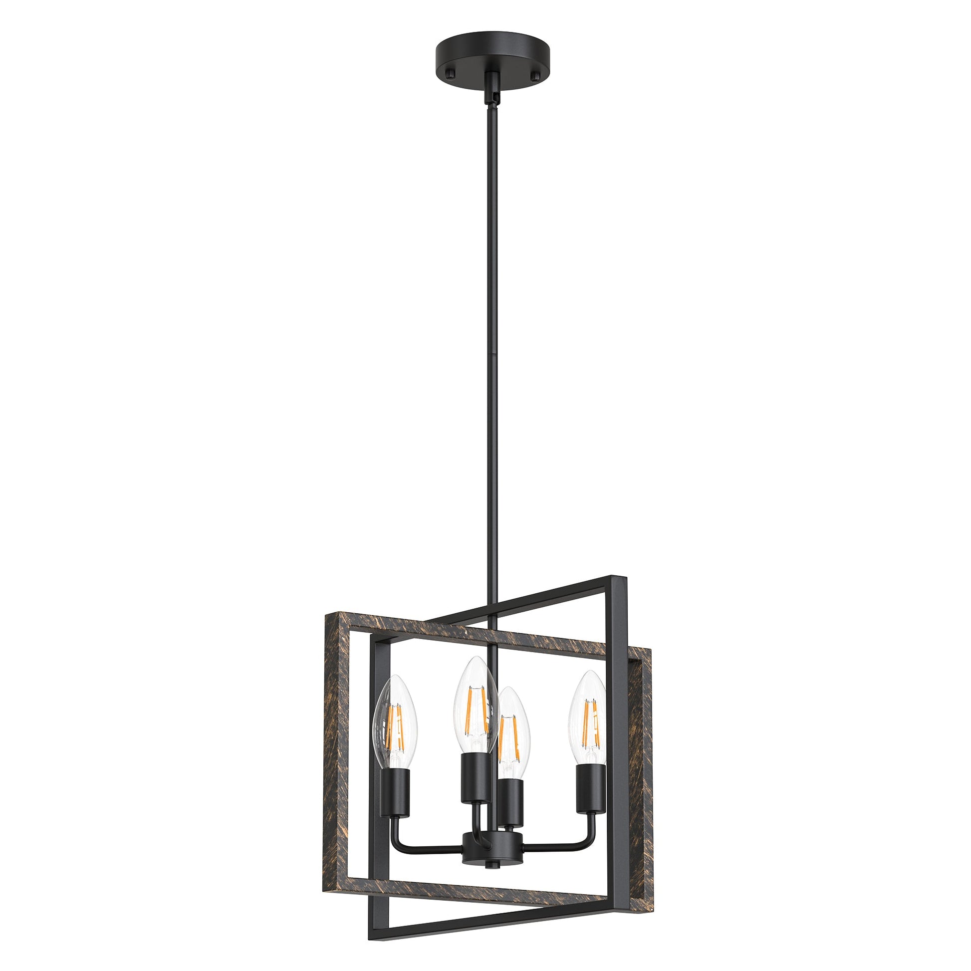 4-Light Kitchen Island Lighting,Dining Room Farmhouse Chandelier,Black Modern Pendant Lighting,Pool Table Lights,Wood and Matte Black Metal Finish