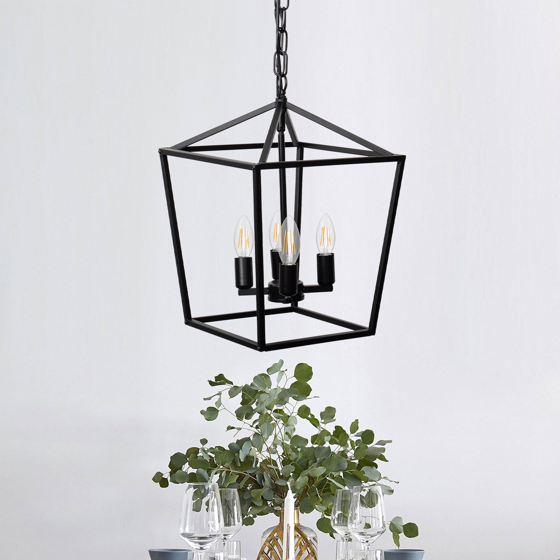 4-Light Lantern Pendant Light,Modern Industrial Black Cage Farmhouse Chandelier for Kitchen Island,Rustic Metal Hanging Lighting Fixture for Dining Room Bedroom Foyer Entry Porch