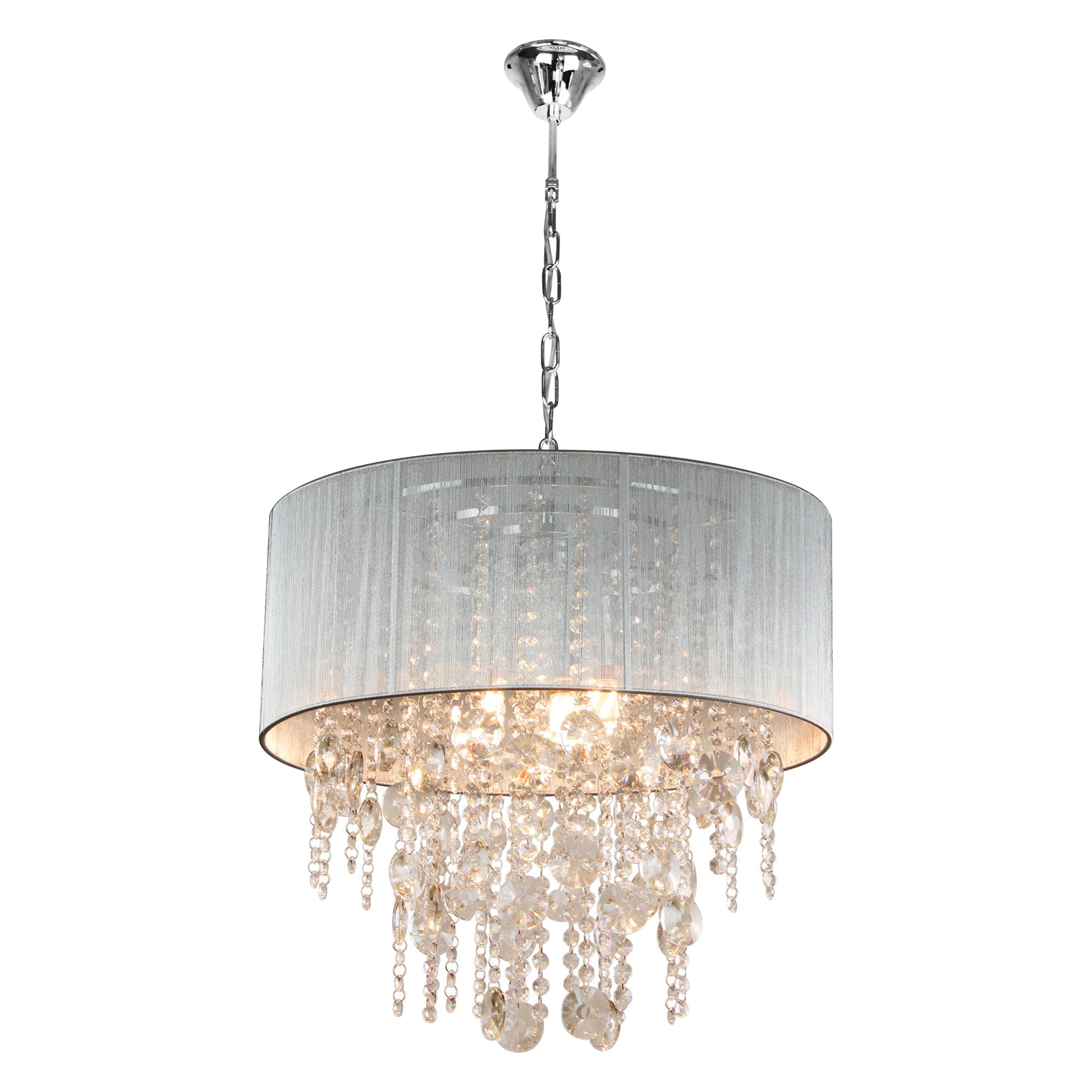 5-light Modern Crystals Chandelier With Shade,Crystal Drum Light ,E26 Base,Pendant Light Fixture, Sliver Finish