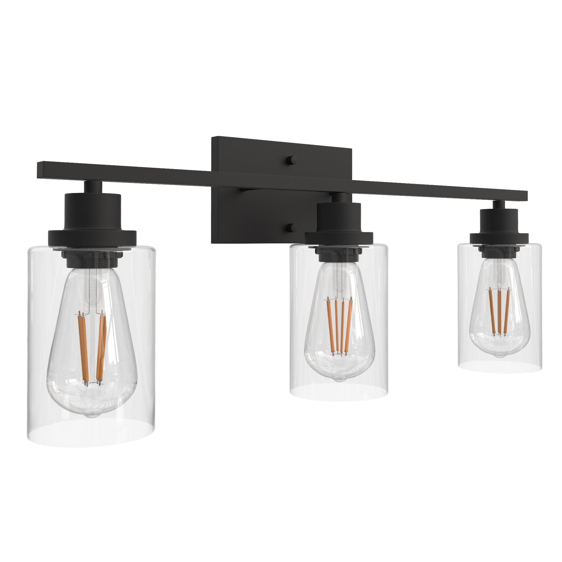 With a touch of understated elegance and class delivered from its clean-line and crisp appearance, black bathroom vanity lights feature 3 curved grass shades, minimalistic detailing, and matte black finish, achieving a chic look for your glam, contemporary and stylish room. The minimalistic concept also applies in the installation method of industrial black vanity lights, which can be mounted reversibly as an uplight or a downlight and easily installed without hassle. Covered with matte black, makeup vanity with lights will impress you with its scratch and wear resistance while creating a free, relaxed, and comfortable atmosphere. ?Illumination as its basic functionality, 3-light bathroom fixture is purpose made to provide enough light for applying the makeup and other daily basic need, well fitted in bathroom dressers, master bedroom's bathroom and living room.