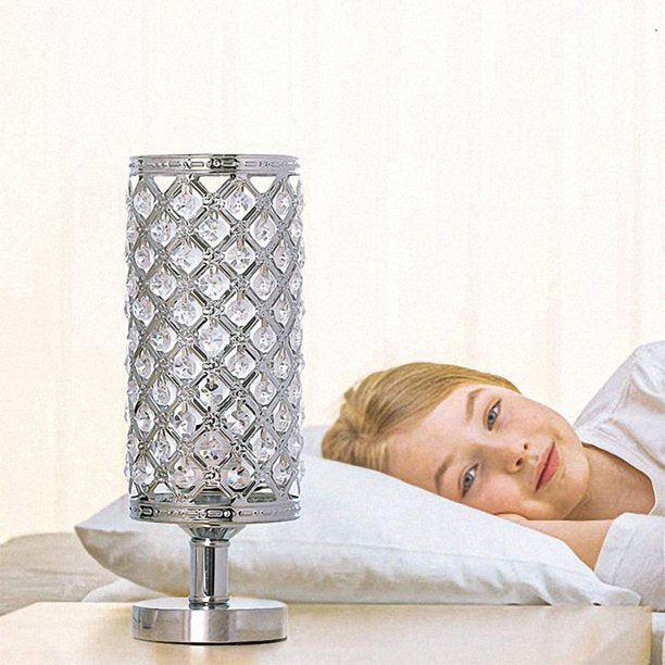 Crystal Table Lamp, Nightstand Decorative Room Desk Lamp, Night Light Lamp, Table Lamps for Bedroom, Living Room, Kitchen, Dining Room (Silver)