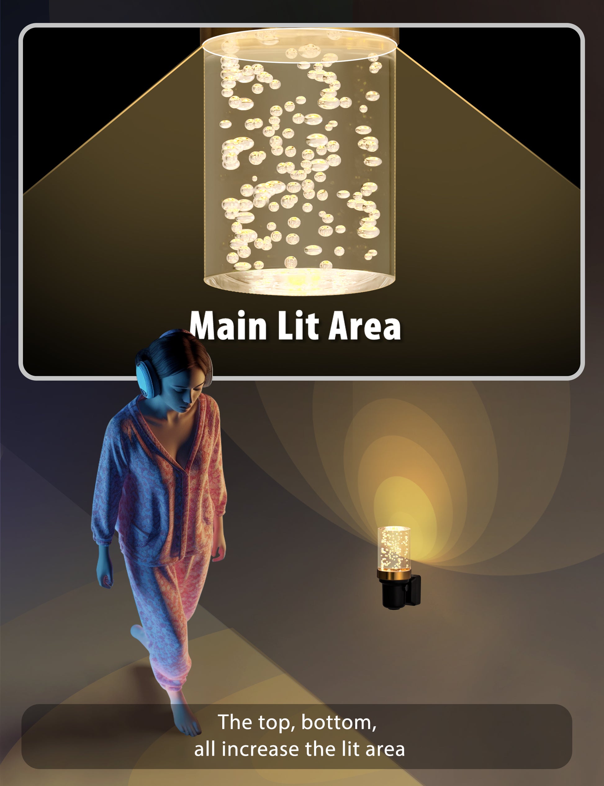 - STYLISH & DECORATIVE DESIGN: Modern bubble cylinder night light with a gold and black finish adds an elegant touch to any room.