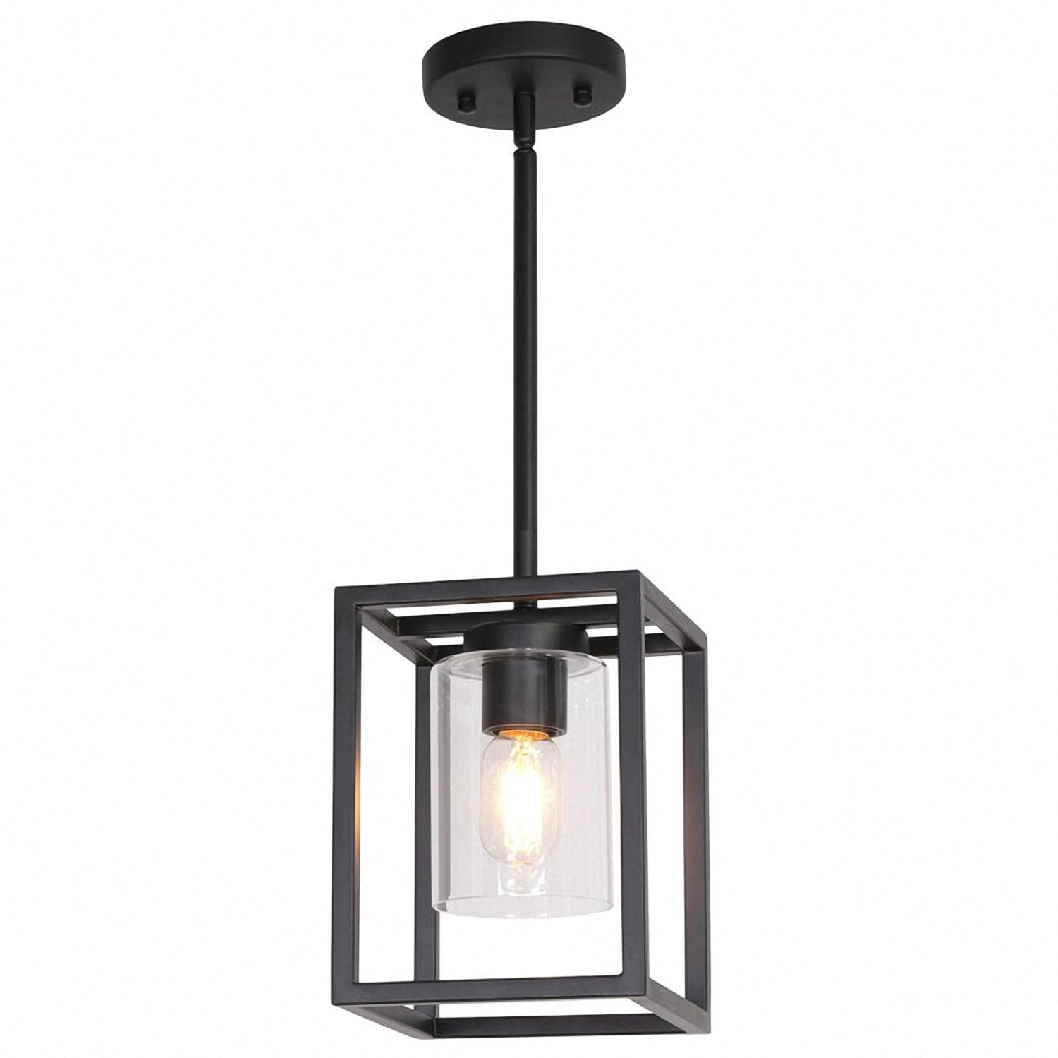 Farmhouse Glass Pendant Light, 1 Light Cage Hanging Pendant Lighting for Kitchen Island with Clear Glass Shade in Black Finish, Adjustable Length