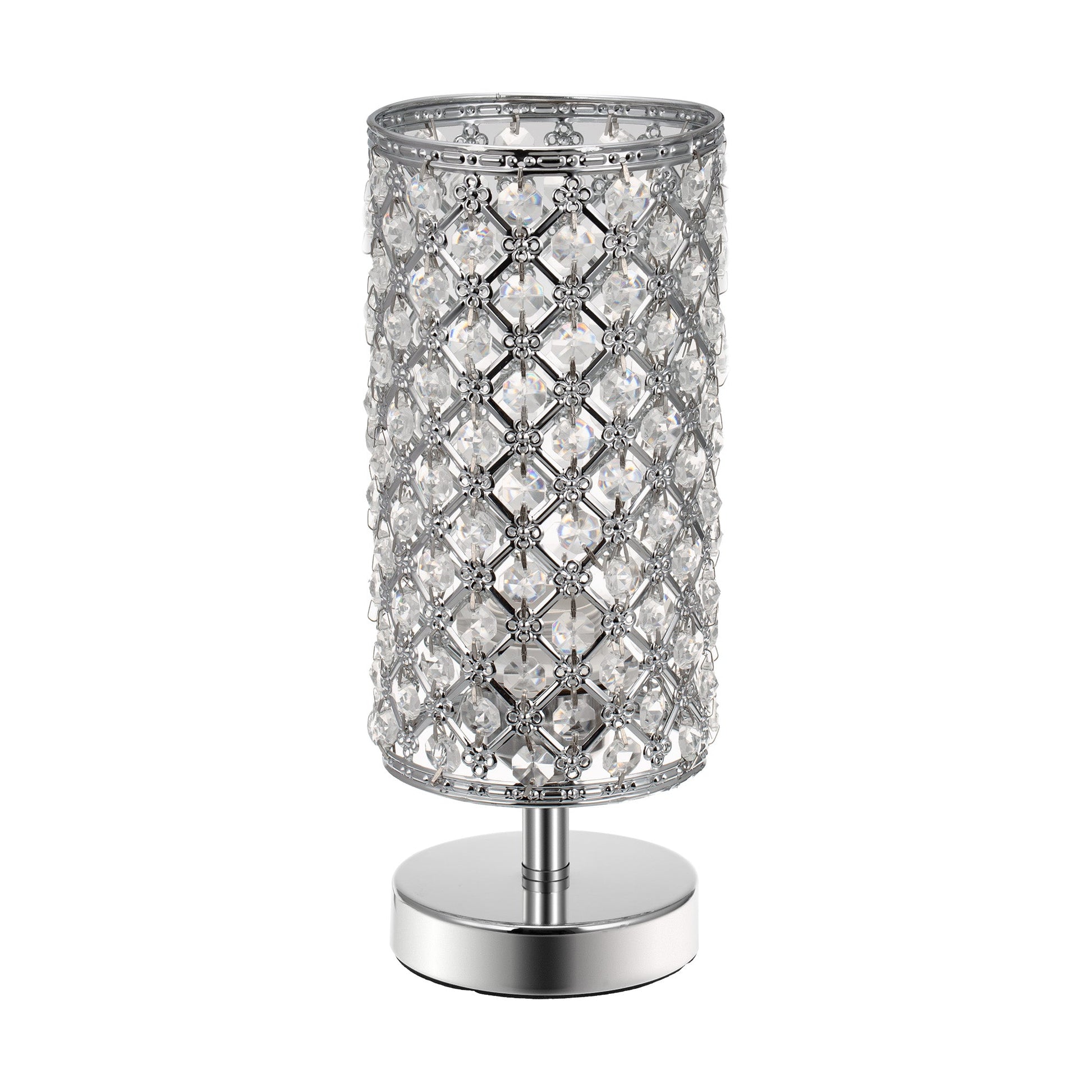 Silver Finish 1-Light Crystal Table Table Lamp, Nightstand Lamps for Bedroom, Guest Room