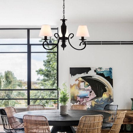 Vintage 3 Lights Chandelier with Linen Shade, Adjustable Chain for Dining Room, Bedroom, Living Room, French Style