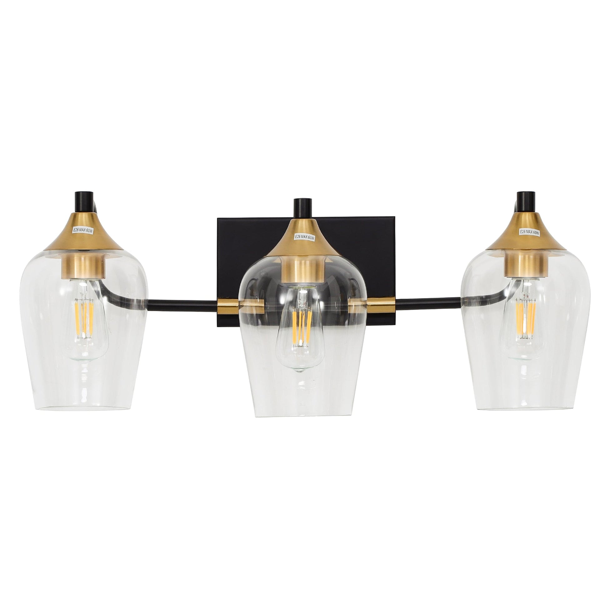 Vintage Bathroom Lighting Fixtures 3 Lights Matte Black and Gold Vanity Light with Clear Glass Shades Farmhouse Wall Lamp Sconce