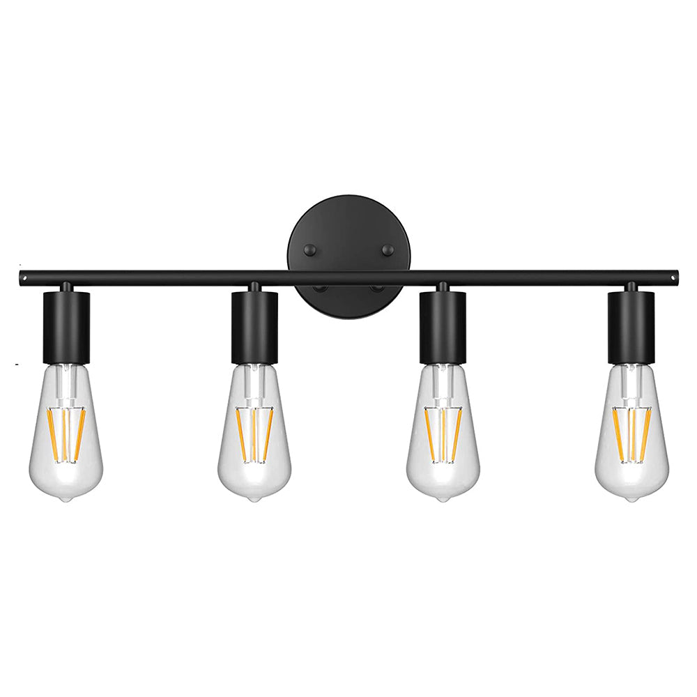 YANSUN Black Modern Bathroom Vanity Light Lamp with 4 Lights,Farmhouse Wall Light Fixture without Shade,Indoor Wall Lamp for Bathroom,Mirror,Bedroom,Entryway