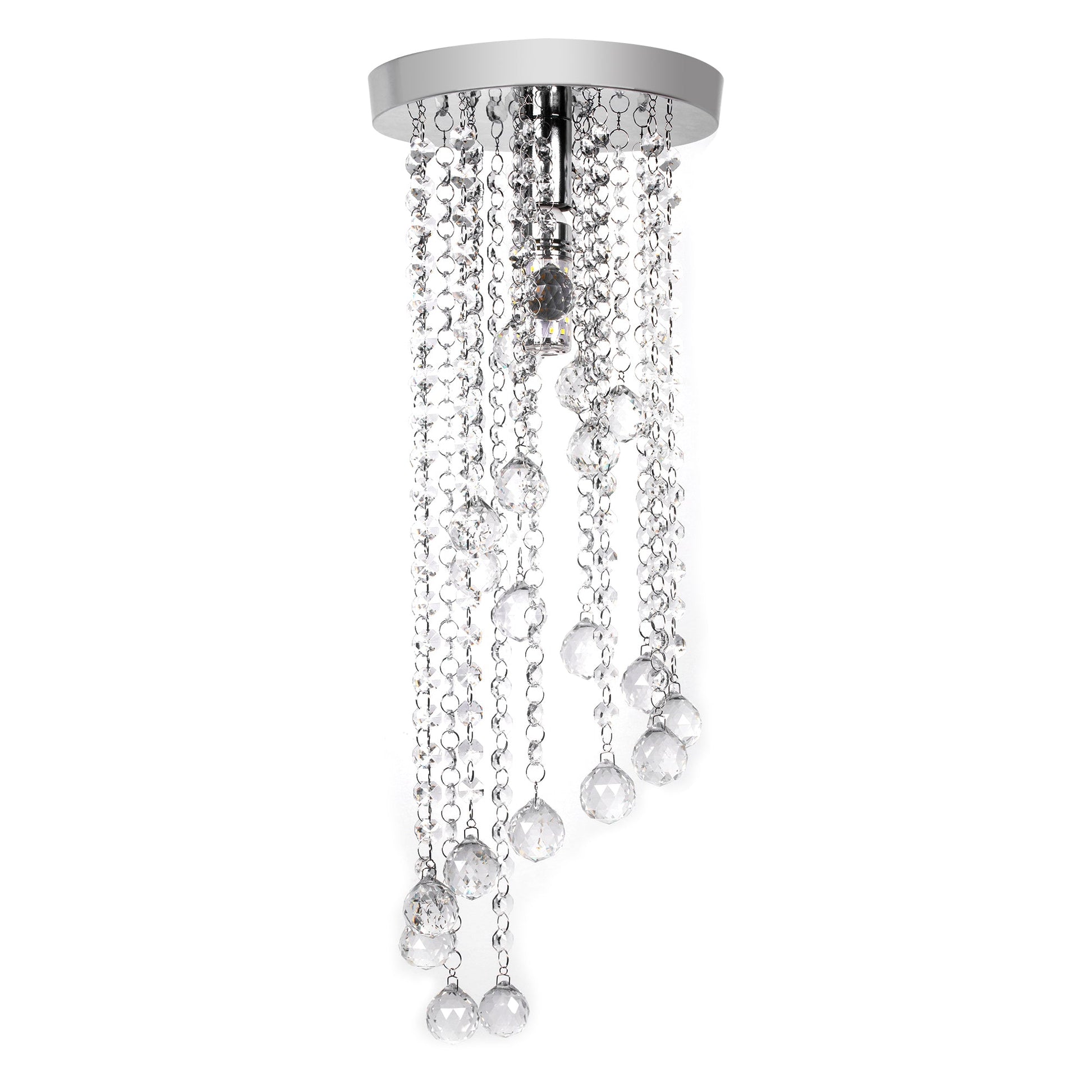 This 1-light flush mount features sparkling spiral crystals that fill the room with beautiful rainbow lights. It is very easy to connect the rope and the water drop. This chandelier will add elegance and ambience to your stairwell entryway foyer and high ceiling home.